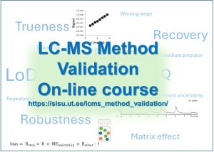 This is a practice-oriented online course on validation of analytical methods, specifically using liquid chromatography-mass spectrometry (LC-MS) as the technique, mostly (but not limited to) using the electrospray (ESI) ion source. The course will also be of interest to chromatography practitioners using other detector types. The course introduces the main concepts and mathematical apparatus of validation, covers the most important method performance parameters and ways of estimating them. More information about the course can be found on the Course introduction page.